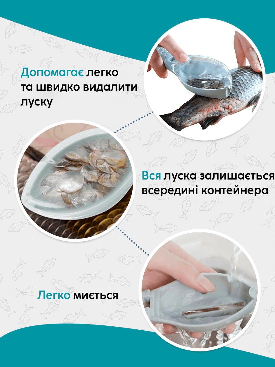 Рибочистка з контейнером - сучасний кухонний девайс для безпечного та швидкого чищення риби.