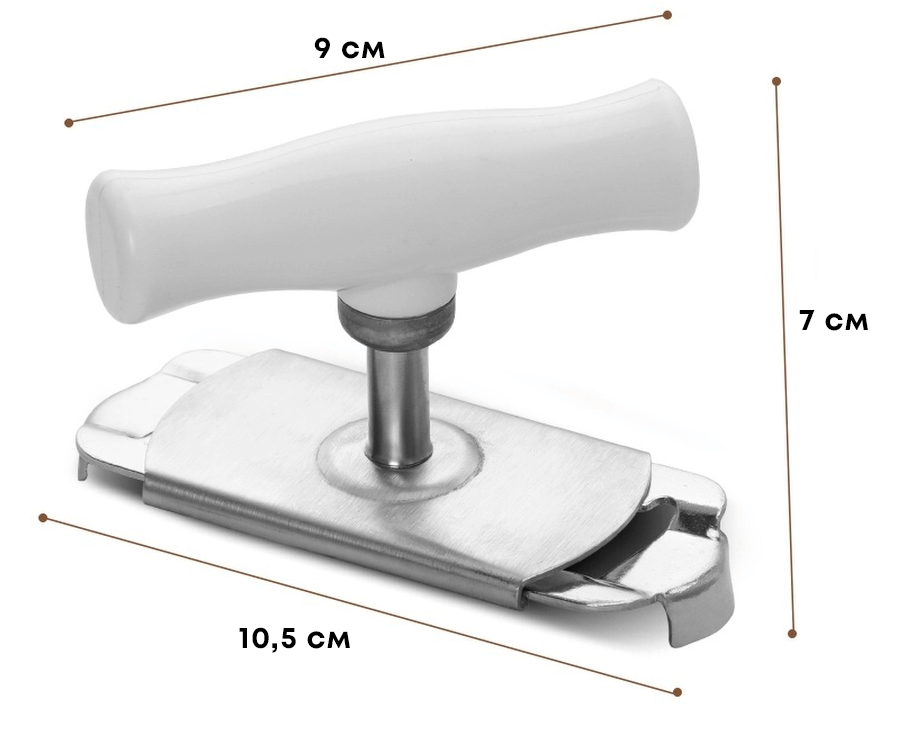 Універсальний ключ для кришок скляних банок впорається з кришками діаметром - 38, - 43, - 48, - 53, - 58, - 63, - 66, - 70, - 82, - 89, - 100.
